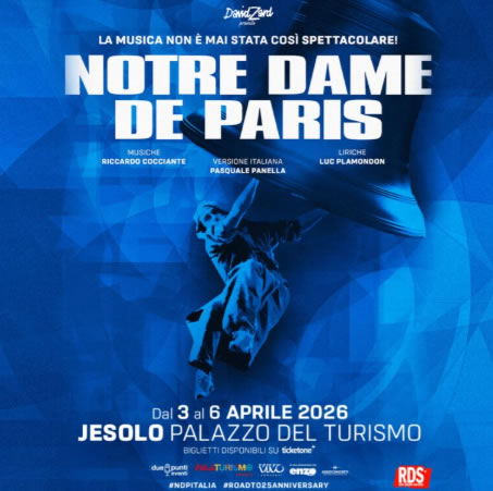 Das Musical Notre Dame de Paris, das Kolossal von Riccardo Cocciante wird vom 3. bis 6. April 2026 im Palazzo del Turismo in Jesolo aufgeführt.
